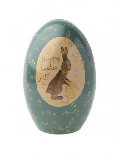 C'est une vieille tradition d'apporter un œuf de Pâques en cadeau pour les fêtes. Ces œufs en métal sont décorés de dessins uniques par Maileg Remplissez les de petits cadeaux. Vendu à l'unité : coloris bleu ou jaune Merci de nous préciser le coloris choisi