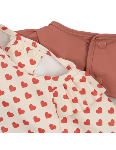 Konges Slojd Lot de 2 grands bavoirs à manches et volants - coeur rouge KS5812