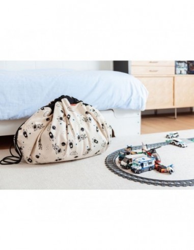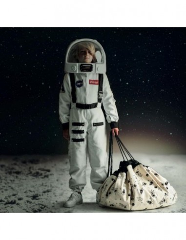 Nos petits cosmonautes embarquent à bord du vaisseau spatial, direction l’espace et ses mystères. Pour se repérer là-haut, le sac brille dans le noir et guide nos aventuriers à travers la galaxie. Le soir, on replie ce sac aux allures de nuit d'été et on en profite pour se poser un instant et admirer la lune.