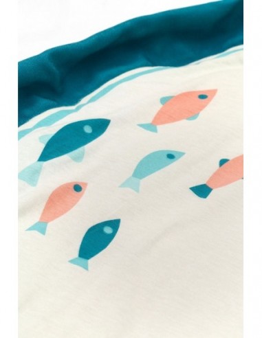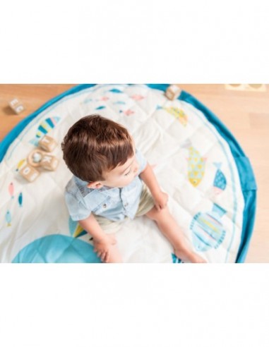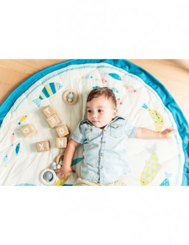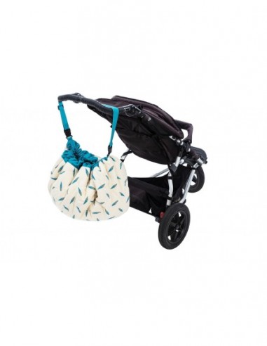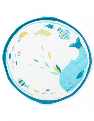 La célèbre maison moulin Roty a gentiment prêté à Play and Go , Olga , une baleine espiègle toute douce et sa clique de poissons colorés qui égaient le tapis de jeu de votre tout petit nageur. Elle nous a aussi fait cadeau d’une jolie cargaison de plumes exotiques qui ornent le sac une fois replié.