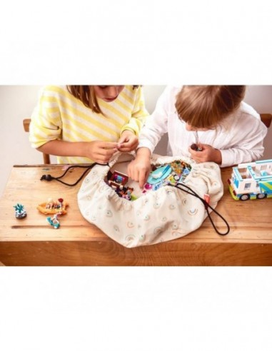 Le sac de rangement souple et durable pour les mini arcs-en-ciel est un moyen fantastique de transporter vos jouets et fournitures de bricolage préférés. Que vous cherchiez à vous déguiser, à explorer les surfaces de la lune ou à rassembler toutes vos voitures miniatures, le sac est généreusement dimensionné pour rendre le jeu à la fois pratique et amusant.