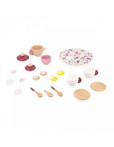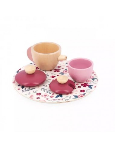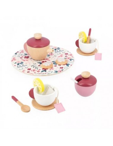 Dînette musicale en métal décorée par Michelle Carlslund. Quand on penche la théière une douce mélodie se met en marche. Composée de 14 pièces : 1 théière musicale, 4 tasses, 4 sous-tasses, 4 assiettes à dessert, 1 plateau.