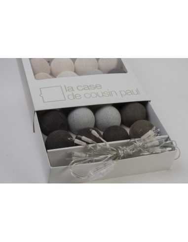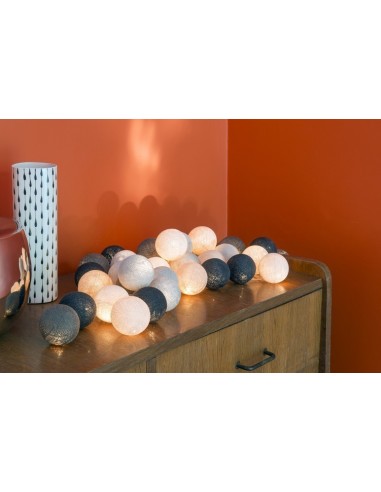 Informations techniques : 230V / 20 lampes de 12 V / guirlande d'intérieur normes CE Dimensions du luminaire : Longueur totale : 2.90 m /14 cm entre chaque boule / boule de Ø 7 cm (1 m 40 de la première à la dernière boule plus 1 m 50 de la prise aux 1ères ampoules) Coloris des boules : lin, ivoire, gris perle, graphite, anthracite