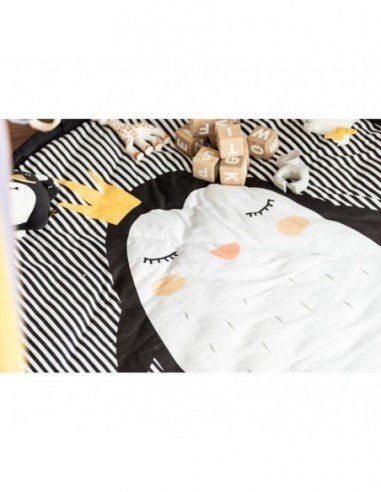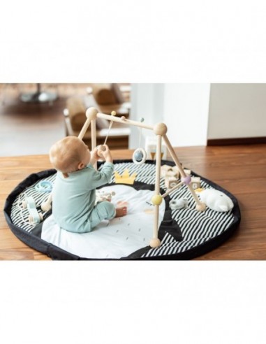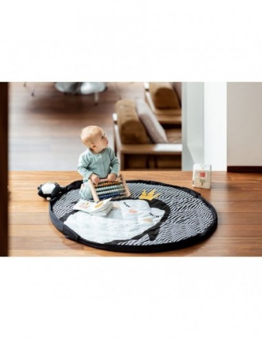 Il est équipé d'une bandoulière amovible pour pouvoir le porter sur l'épaule ou l'attacher sur un landau/une poussette. Pour la sécurité des bébés, Play&Go a ajouté un petit rabat en coton qui empêche d’atteindre les cordes de serrage. Composition : 100% coton jersey et rembourrage polyester.Diamètre : 120 cm.