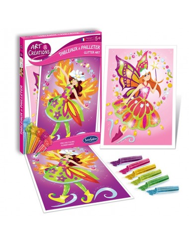 Contenu du coffret :• 2 tableaux illustrés prédécoupés et encollés • 6 tubes de paillettes • 1 couteau en plastique • 1 notice explicative