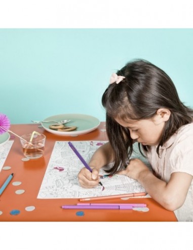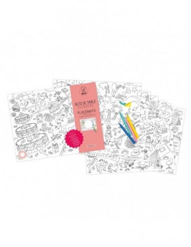Idéal pour les goûters d'anniversaire ou pour faire une jolie table lorsque les amis viennent manger! Jolie pochette de 24 sets de table en papier à colorier avec 6 dessins différents à découvrir. De quoi s'amuser pendant des heures!6 dessins inclus, 4 feuilles par dessin.Format 30 x 40 cm.Imprimé sur papier recyclé. Made in France