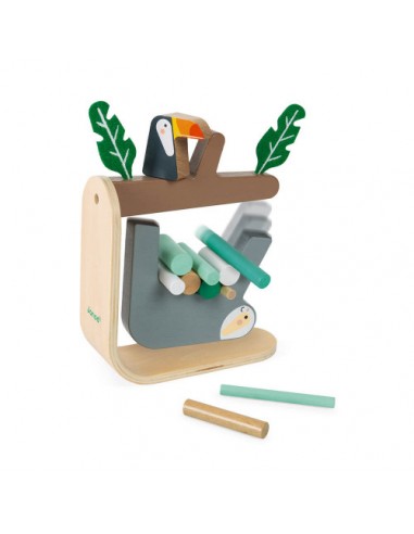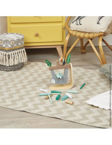 Jouet 2 en 1 : - Jouet à promener pour développer la motricité de bébé. - De nombreux blocs à empiler pour apprendre les formes et les couleurs. Bois: hêtre et merisier. Roues silencieuses grâce au caoutchouc antidérapant. Longueur de la ficelle: 50 cm. Peinture à l''eau. Certifié FSC. Produit maintenu par un blister dans une boite couleur fenêtre.