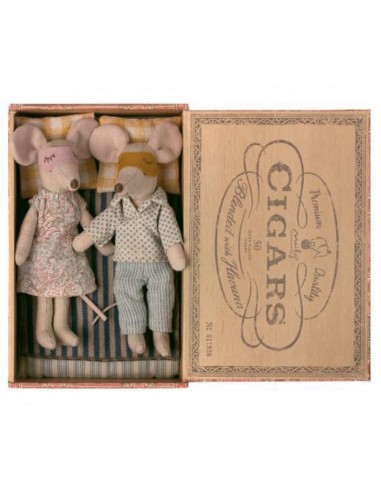 Maileg Mum & Dad mice in cigarbox 5707304106012