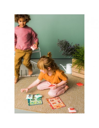 Une poire empilable qui cache un ver, un petit lapin caché dans une carotte, un oiseau et un canard qui font du bruit, un seau de maïs maracas et un tracteur Monsieur / Madame sur lequel il faut faire coulisser des fruits. Tout un univers imaginaire pour développer la motricité et la curiosité des petits ! Tracteur multi-activités en bois.