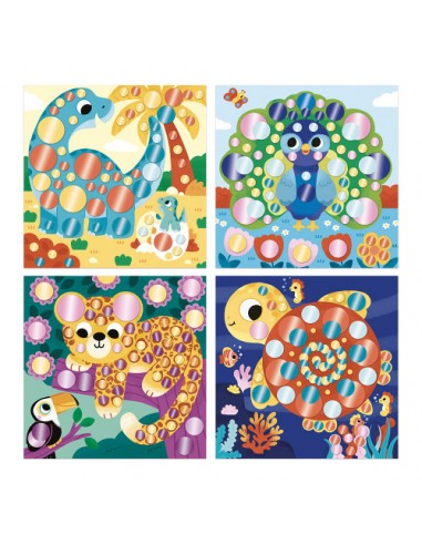 3 tableaux à décorer avec plus de 660 mosaïques en mousse et 1 livret avec les instructions et les modèles. Cette activité créative développe : la motricité, la réflexion et l'application.