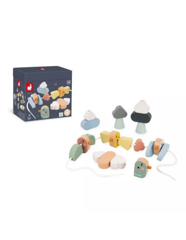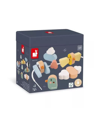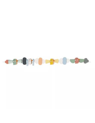De grosses perles en bois à enfiler sur le thème des animaux spécialement conçues pour les 18 mois et plus. Jeu qui aide au développement de la motricité fine.