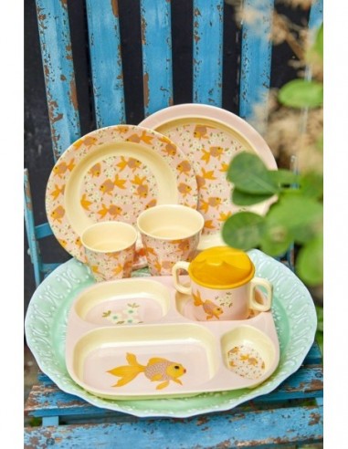 Le fameux gobelet RICE en mélamine pour enfant, imprimé poisson rouge et fleurettes sur fond rose pâle. Ce gobelet est un de nos articles préférés… On peut l’utiliser pour presque tout – pour boire bien sûr, mais aussi pour un petit en-cas, comme vide-poche, en pique-nique ou pour mettre des jolies fleurs.
