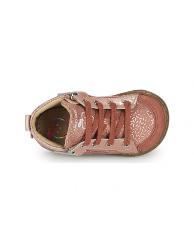 Bouba Bi Zip est une chaussure premier-pas, présentée ici dans une version en cuir velours rose imprimés métallisés, et empiècements en cuir vernis argent. Cette chaussure est conçue avec des matériaux de qualité : légère et souple pour le bon déroulement du pied. Elle a une tige haute avec lacage pour un bon déroulement de la cheville et du cou-de-pied. Elle se chausse et se déchausse facilement grâce à son zip intérieur. Ce modèle est recommandé par les professionnels de l'UFSP.