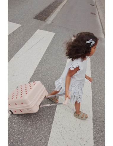 La valise est munie d'une poignée supérieure fixe très pratique et d'une poignée télescopique en aluminium réglable à trois niveaux. Conçue avec un compartiment inférieur à sangles croisées et un compartiment supérieur zippé avec une poche filet également zippée.