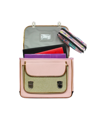 Cartable 38cm, idéal pour les premières années de primaire des petites filles. Ce cartable élégant, pensé pour les filles sophistiquées et orné d’une majestueuse libellule pailletée, est composé d’une doublure intérieure en polyester 100 % recyclé, pour agir avec classe contre le gaspillage