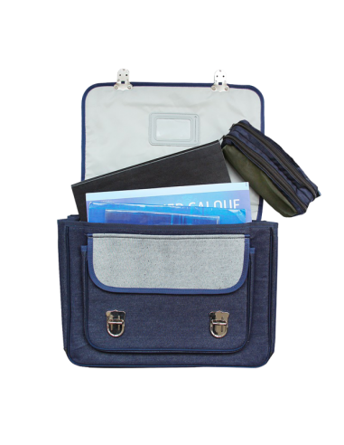 Cartable 41cm, idéal pour les enfants de CE2, CM1 ou CM2. Ce cartable élégant, pensé pour les enfants vaillants et orné d’un magnifique éclair argenté, est composé d’une doublure intérieure en polyester 100 % recyclé, pour agir avec classe contre le gaspillage.