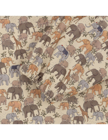 Lot de 2 grands bavoir-tabliers à manches en toile imperméable l'un imprimé Animaux Safari, l'autre Bleu clair uni. Fermeture avec pressions