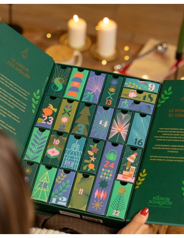 Cette année, offrez-vous ou offrez à vos proches un voyage gourmand avant Noël avec le tout premier calendrier de l’Avent de thé et d’infusions Maison Bourgeon.