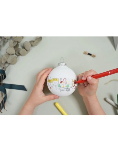 On s'amuse en attendant Noël ! Nos petits et grands artistes pourront s'amuser sur un joli thème. A vous de colorier la boule de Noël et tant pis pour les ratures. Et oui, avec les feutres de notre partenaire Carioca®, même l'encre sèche peut s'effacer à l'aide d'un chiffon doux humide. Ce kit est composé d'une boule de Noël blanc mat, 4 feutres de notre partenaire Carioca® (rouge, vert, jaune & gris), la cordelette chanvre Les instructions sont au dos du packaging.