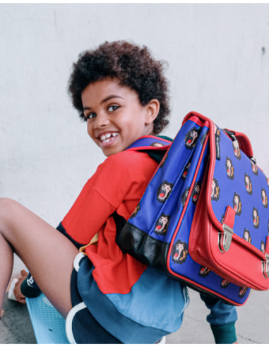 Cartable 41cm, conçu pour les plus grands. 100% imperméable, à l’intérieur comme à l’extérieur, ce cartable décoré de têtes de lions est à la fois beau et robuste.