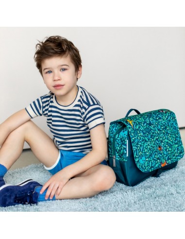 Cette charmante petite maison forestière est habitée par une joyeuse bande. Si votre enfant y glisse sa photo dans la pochette prévue à cet effet, il fera aussi partie de ses habitants. Ce cartable ergonomique est parfaitement pensé pour les petits, avec de magnifiques illustrations qui titillent leur imagination. Fabriqué en matériau PET recyclé.