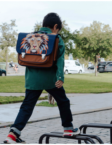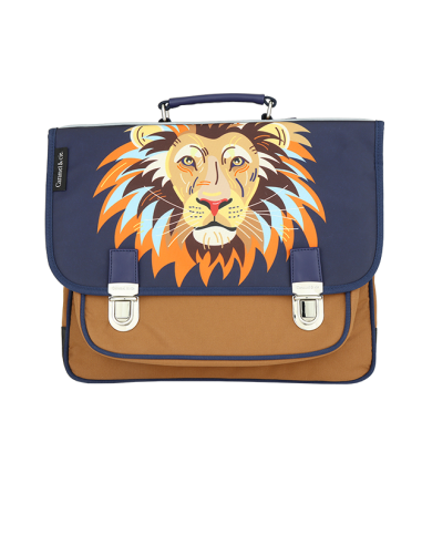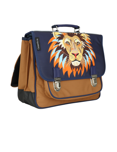Cartable 38 cm, idéal pour les premières années de primaire des petits garçons d'un stature entre 1,10 m et 1,30 m. Cartable au design unique d'une tête de lion majestueuse et colorée pour les garçons ultra stylés !