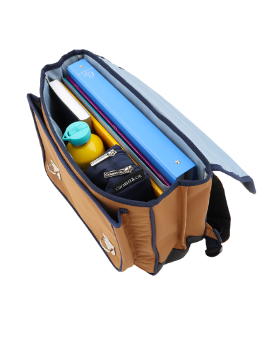 Façonné dans des matières de haute qualité, déperlant et pensé pour un usage intensif, le cartable scolaire Caramel & Cie est conçu pour être le plus léger possible. Les coutures sont renforcées aux points d’usure, les matériaux déperlants, le dos et les parois faits pour protéger le contenu du sac tout au long d’une journée à l’école.