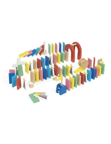 Construire, faire tomber et recommencer ! Découvrez un parcours de dominos composé de 100 pièces en bois et au design coloré, qui permet aux enfants dès 3 ans de créer des parcours semés d'obstacles et de développer leur imagination. Clochette, pont, moulin, bobine... les enfants ont tout ce qu'il faut pour créer des enchaînements spectaculaires et inventer des parcours toujours plus fous.