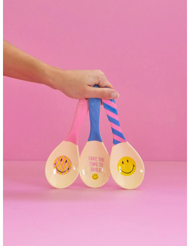 La touche bonne humeur pour vos salades avec cette magnifique cuillère à riz en mélamine. Avec un manche rose et le grand sourire Smiley®, c’est la collab’ parfaite ! Smiley® et RICE, ou quand « Take the time to smile » rencontre « Everyday Magic » ! À utiliser sans compter : au quotidien, pour une fête ou un pique-nique… La vie est si simple ! TM & © Smiley