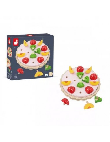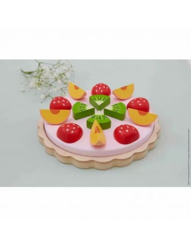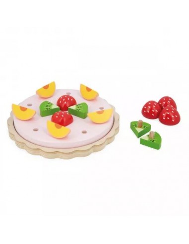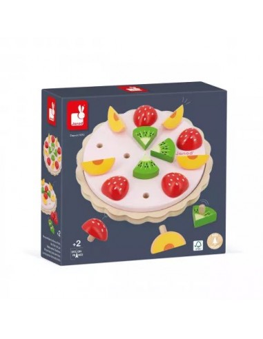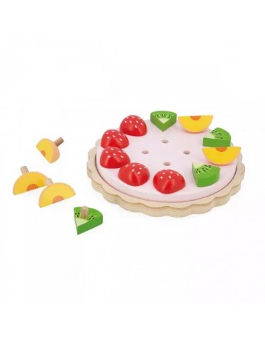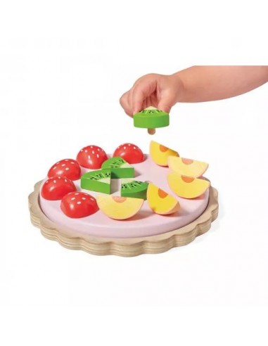 Une tarte aux fruits, ça vous dit ? Les petits pâtissiers dès 2 ans vont adorer créer leur première tarte aux fruits avec ce set d'imitation en bois. Pour ce faire, les enfants disposent d'un fond de tarte, 5 demi-fraises, 5 quartiers de pêche et 4 morceaux de kiwi. Que de bonnes choses ! Les bambins manipulent facilement les fruits à encastrer grâce à leur taille adaptée et aux tenons en bois : chaque emplacement est prévu, pour des morceaux de fruits toujours bien disposés.