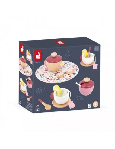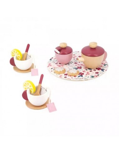 Pour mettre en valeur ces éléments, nos petits hôtes pourront présenter les tasses sur 2 soucoupes et l'ensemble sur le plateau en bois délicatement décoré de motifs floraux poétiques. Pour cette petite pause gourmande, quoi de mieux que 2 biscuits pour accompagner le thé. Ce service à thé est parfait pour accompagner les dinettes ou les cuisines pour enfants. Il permet de jouer en développant l'imagination des plus petits ! Il est fabriqué en bois FSC®.