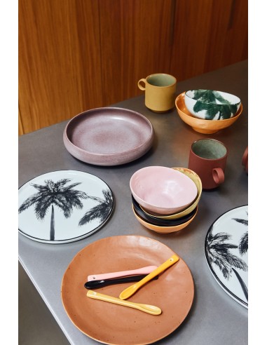 Vous aimez la collection de palmiers? Nous leur avons donné une petite retouche. Juste pour que vous puissiez ajouter cette touche de saveur botanique à votre cuisine. La collection palmier est disponible dans une assiette, une assiette, un bol, un bol et un plateau de service.