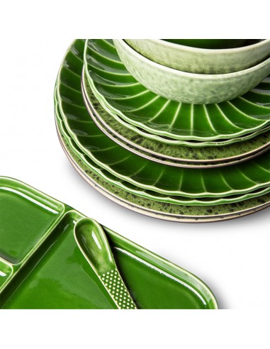 Cette assiette à dessert en grès vert indigo est fabriquée artisanalement par Madam Stoltz. Résistante, elle passe au lave-vaisselle, micro-ondes. Ces petites taches lui donnent un aspect nature et parfait pour vos espaces en bordure d'eau.