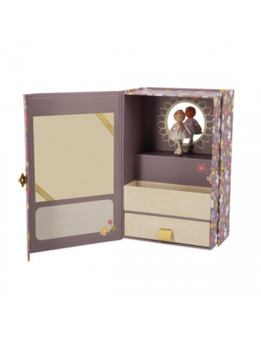 Un coffret idéal pour ranger ses petits secrets ou ses objets précieux, qui peut être personnalisé avec une photo et un petit mot. Valentine est une véritable amie qui veillera sur ces petits trésors ! Un cadeau intemporel, à offrir en toute occasion pour un cadeau empreint de tendresse. Composée de carton certifié FSC®, cette boîte à musique propose un petit tiroir en suédine, pour toujours plus de délicatesse.