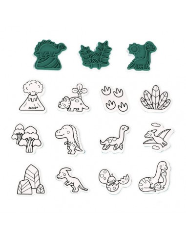 Les aventures attendent les enfants au pays des dinosaures ! Avec ce set de 15 tampons encreurs, les petits artistes ajouteront à leurs dessins tricératops et autres diplodocus, pour une immersion au cœur du Jurassique. Un bon moyen de laisser libre court à son imagination en créant toutes sortes de scènes, avec de nombreux dinosaures et des éléments de décor comme un volcan en éruption ! Les enfants dès 3 ans développent ainsi leur imagination, leur créativité et leur motricité fine en manipulant les tampons. Une activité ludique et créative, idéale pour un temps calme et pour initier au dessin les plus réticents !