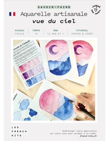 Nos kits aquarelles débutant contiennent une peinture artisanale fabriquée à la main. Il est accompagné d'un tutoriel papier et d'un tutoriel vidéo.