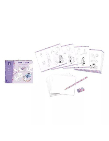 Chaque modèle est décomposé, et tout le nécessaire est fourni pour que les petits puissent s'exercer au dessin et se perfectionner : bientôt, ils sauront reproduire les personnages et éléments sans modèles, et peut-être leur apporteront-ils des modifications en laissant parler leur imagination ! Même un débutant en dessin prendra plaisir à reproduire les modèles, car c'est finalement très accessible lorsque l'illustration est décomposée en plusieurs étapes simples. En quelques coups de crayon, de fantastiques dessins apparaissent ! C'est une réelle satisfaction pour les enfants, qui profitent d’une activité stimulante et créative. Concentration et précision sont de mise pour apprendre à dessiner, puis avec la confiance vient l’envie de personnaliser les dessins … Ou de dessiner toujours plus ! Ce kit de loisir créatif dessin pour enfant fait partie de notre gamme « Step By Step Drawing », une série de coffrets permettant aux enfants de 6 et 7 ans d’apprendre à dessiner pas à pas.