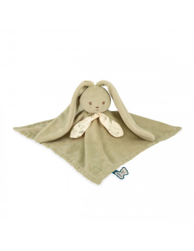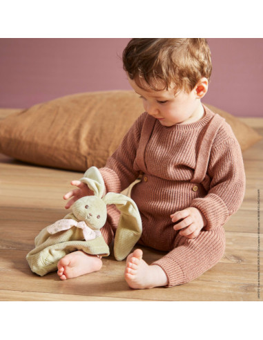 Craquez pour ce joli doudou Lapinoo, un doux compagnon idéal pour bébé dès la naissance. Mesurant 30 cm, ce joyeux lapin vert apportera affection et réconfort à votre enfant. Sa conception en bi-matière associe un doux velours côtelé à une viscose légère, offrant une douceur et un confort incomparables à votre tout-petit. Ce doudou lapin vert dégage une élégance rafraichissante et possède un style raffiné et délicat. Son petit foulard lui confère une touche de fraicheur, ajoutant une note d'originalité à son apparence. Ce qui le rend vraiment unique, ce sont ses longues oreilles à câliner.