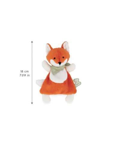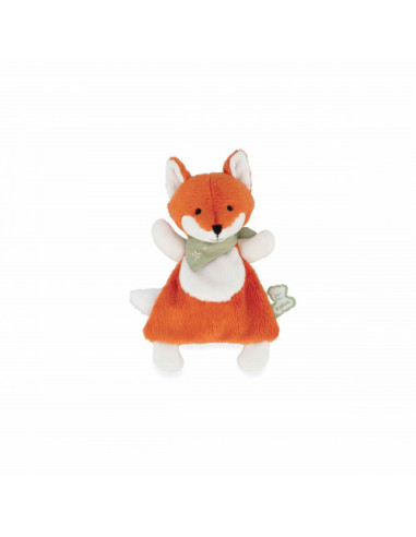 Adoptez un doudou renard pour bébé, synonyme de loyauté et d’espièglerie ! Adapté dès la naissance, ce doudou plat a tout pour plaire : des éléments faciles à attraper par bébé, une douceur intense, un joli minois, une taille et une forme adaptées aux plus petits. Son petit nom ? C'est Paprika, le renard courageux qui incarne l’aventure et la curiosité. Il invite à la tendresse et à l’affection et fait partie de notre collection Les Amis de Kaloo. Emblème de cette collection, le bandana vert en coton présent autour du cou de l'animal ajoute une touche raffinée à son apparence. Il est décoré de broderies sur le thème de la nature, renforçant le lien du petit renard avec l’environnement dans lequel il évolue.