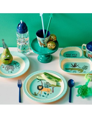 Cette gourde transparente sur le thème des animaux de la jungle te suivra dans toutes tes aventures. Elle dispose d'une paille intégrée qui se déploie quand on ouvre le bouchon bleu.