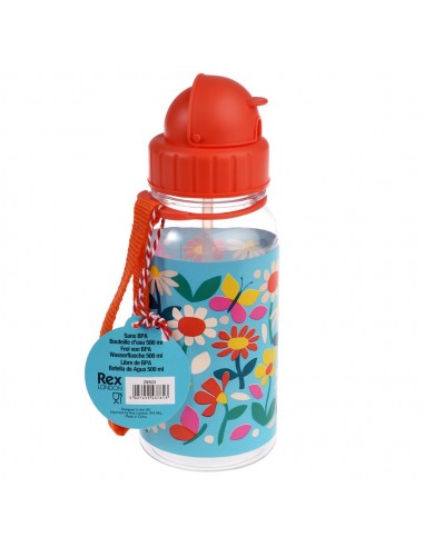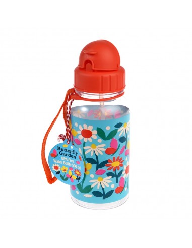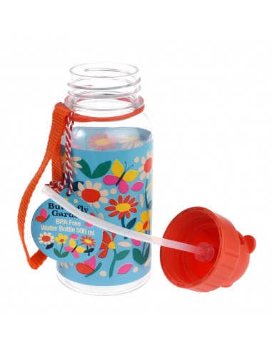 Gourde pour enfant au design Butterfly Garden avec paille intégrée et sangle en nylon.