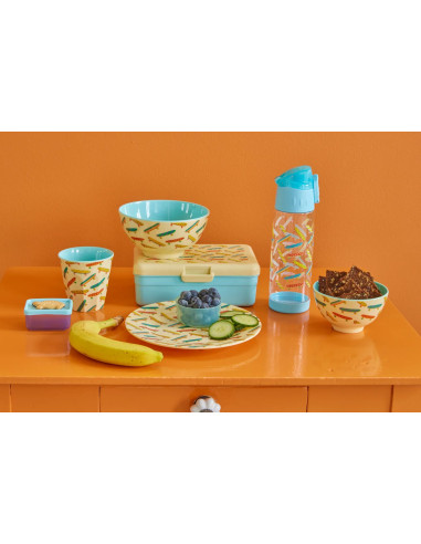 Comme elle est transparente, il vous sera facile de vérifier que votre magnifique gourde n’est pas vide, elle est funky et pratique à la fois ! Si vous aimez cet imprimé, retrouvez-le sur d’autres articles de notre gamme enfants comme les assiettes, les gobelets et les lunch boxes. Chez RICE nous mettons tout en œuvre pour respecter les normes en vigueur en matière de sécurité alimentaire et de durabilité. Ainsi, nous vous assurons de la meilleure qualité pour notre plastique, réutilisable, sans Bisphénol A ni phtalates.