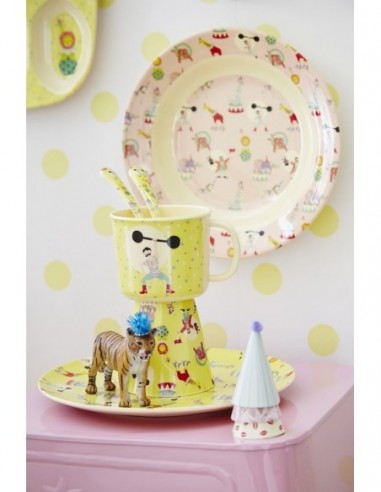 Assiette creuse en mélamine Rice, motif cirque, coloris rose, diam.20cm.