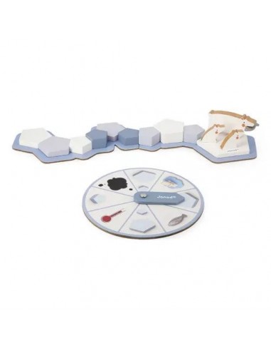 C'est l'heure du repas sur la banquise ! Aidez l'ours polaire à nourrir ses petits dans ce jeu coopératif en bois et carton. Récupérez des poissons sur votre chemin pour les apporter aux petits oursons affamés qui se trouvent au bout du parcours, mais attention aux pièges ! Fontes des glaces, marées noires ... L'ours a besoin de vous ! Destiné aux enfants à partir de 4 ans, ce jeu de société se joue avec la roue fournie.