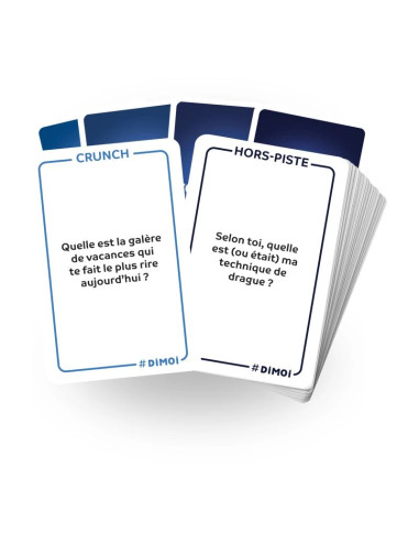 Le jeu est composé de 4 catégories : Connexions, Crunch, Authentique et Hors-piste. Mélangez les cartes ou choisissez une catégorie selon votre humeur de jeu !