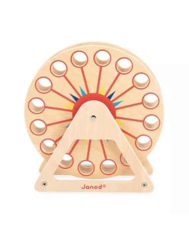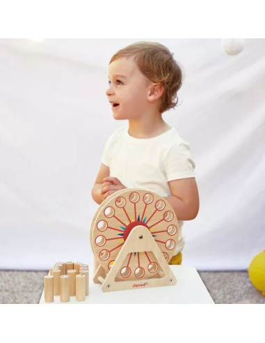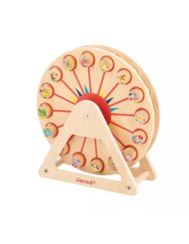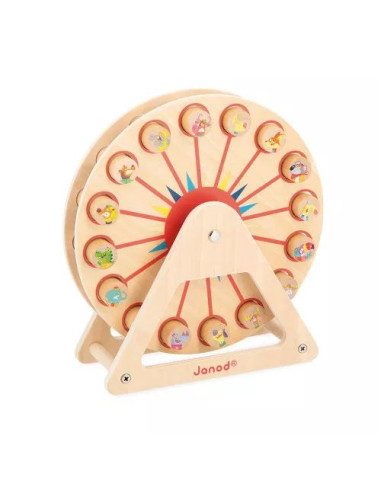 Arriveront-ils à anticiper le mouvement de la roue ? Quelles tactiques vont-ils adopter ? Voilà un jeu d'adresse qui promet de bons moments de convivialité et de suspense ! On adore le style intemporel de cette grande roue ; qui rappelle même aux plus grands de tendres souvenirs d'enfance parfum barbe à papa ; et les expressions amusantes des animaux qui ne savent pas ce qui les attend ! Ce jeu de réflexion fait partie de notre gamme APPLEPOP, une collection de jeux funs et décalés inspirée de l’univers de la fête foraine. Ce jeu est composé de bois certifié FSC™.
