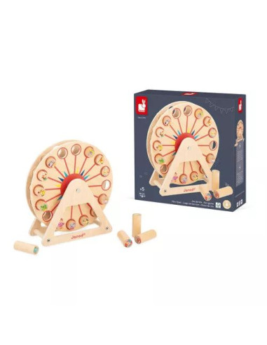 Préparez-vous à faire tourner les têtes ! Destinée aux enfants dès 5 ans, cette version du jeu de Nim revisité façon grande roue en bois est un jeu de réflexion pour toute la famille. C'est un jeu idéal pour développer la concentration et l’élaboration de stratégies chez les plus petits. Sont inclus dans le coffret : 1 grande roue en bois et 16 pions personnages. Le but du jeu est simple : retirer 1, 2 ou 3 personnages chaque tour et être le dernier joueur à laisser un personnage sur la grande roue. Conçu pour 2 joueurs, ce jeu de réflexion invite les enfants à se défier dans des duels stratégiques, créant des moments de partage et d’apprentissage.