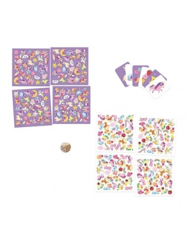 Bienvenue dans le monde enchanté des licornes ! Ce jeu de Cherche et Trouve est conçu pour les enfants dès 3 ans. Le principe : retrouver sur le plateau l'élément indiqué sur sa carte autant de fois que le chiffre du dé. Dans ce monde enchanté, ce sont des licornes, des friandises et des éléments féériques qu'il faudra retrouver !