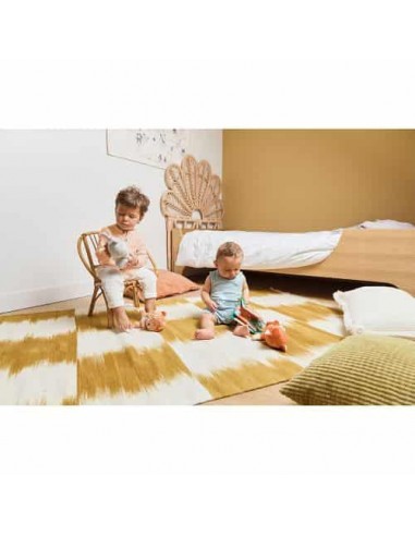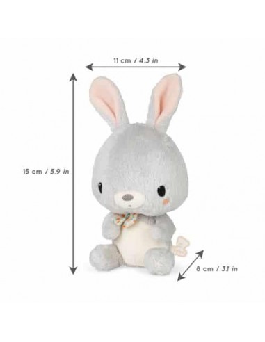 Découvrez Bonbon, un charmant lapin en peluche qui n'attend que vos plus tendres câlins. Tout de fourrure vêtu, il a un air tendre et sympathique, qui offre un véritable réconfort. Sa tête et son corps moelleux ainsi que ses bras et pattes ballants permet à bébé de jouer avec et développer sa dextérité ainsi que sa motricité. Bonbon porte un joli petit ruban signature au cou avec un imprimé aux détails délicats. Cette peluche lapin est composée de papier bruissant dans les oreilles qui lui donne une fonction d'éveil pour stimuler l'audition et le toucher de bébé. Grâce à sa taille de poche (19 cm oreilles comprises), il est facile à transporter.