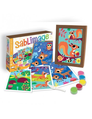 Sablimage est une gamme d’activité ludique et manuelle qui a été conçue pour que de très jeunes enfants puissent facilement, et en toute liberté, réaliser de jolis tableaux naïfs sans se salir. Il suffit de décoller les surfaces préencollées et de les saupoudrer avec les différents sables proposés. Couleur après couleur, chaque illustration prendra vie pour devenir un réel chef d’œuvre ! Un joli résultat est garanti pour les artistes de tout âge.